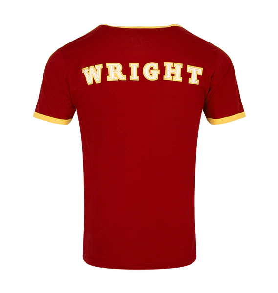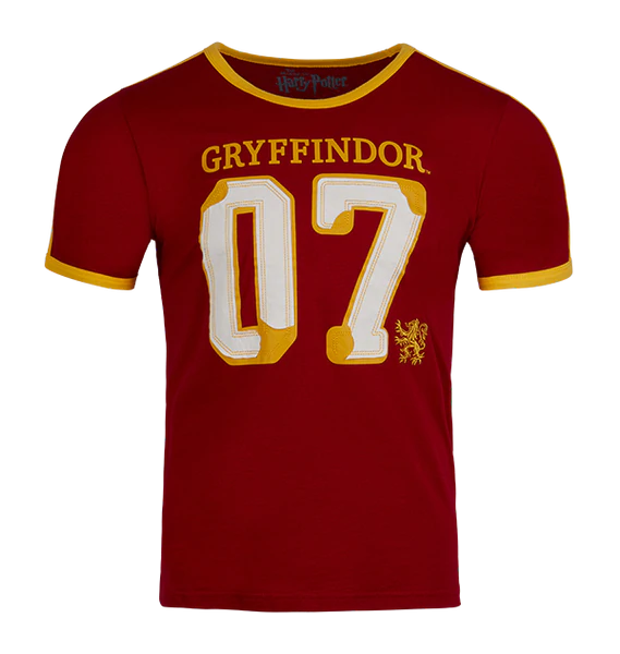 Celebrate your Hogwarts house loyalty with this bespoke Gryffindor House Seeker T-Shirt. The short-sleeved t-shirt comes in the traditional house colour red which is combined with yellow stripes along each sleeve. The number 07 is printed in a yellow and white design in the centre of the t-shirt alongside the word Gryffindor which is printed across the chest in yellow. This personalised Gry ffindor seeker t-shirt is complete with an embroidered yellow lion, the iconic Gryffindor house animal.